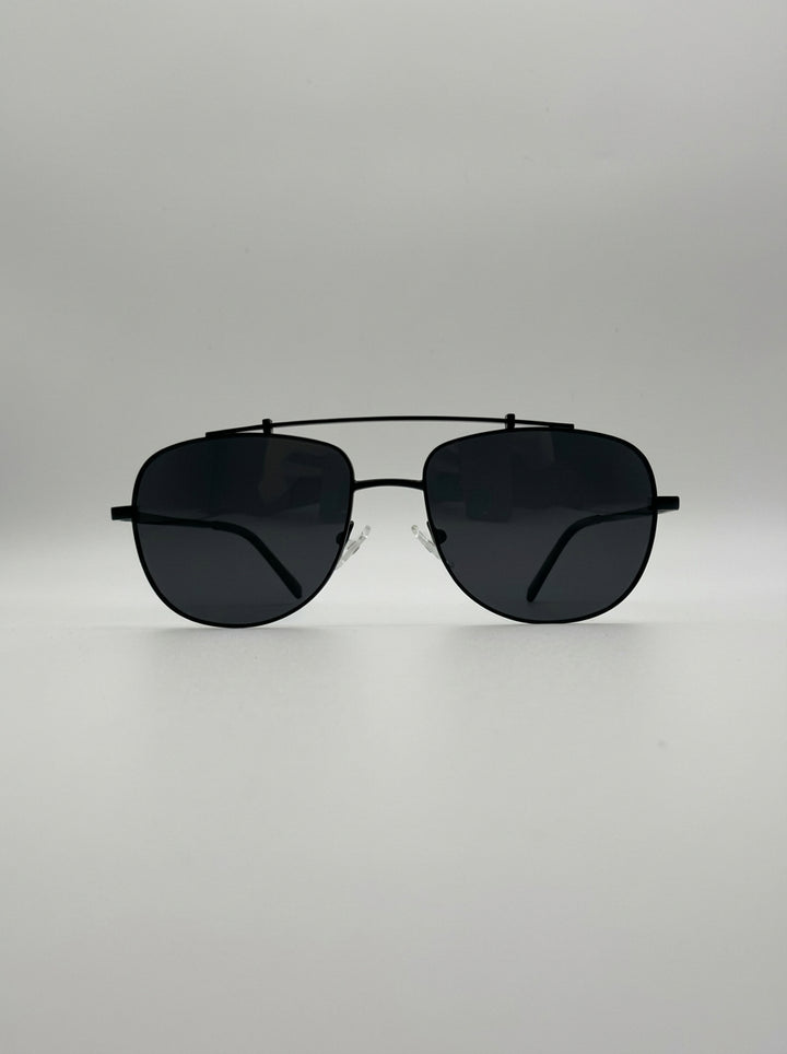 Miami in Black/Black combines the timeless aviator shape with a sleek, modern silhouette. The all-black metal frame gives it a minimalist edge, while the dark lenses bring a confident, understated cool — perfect for both everyday wear and travel.