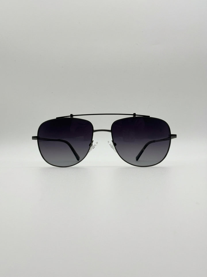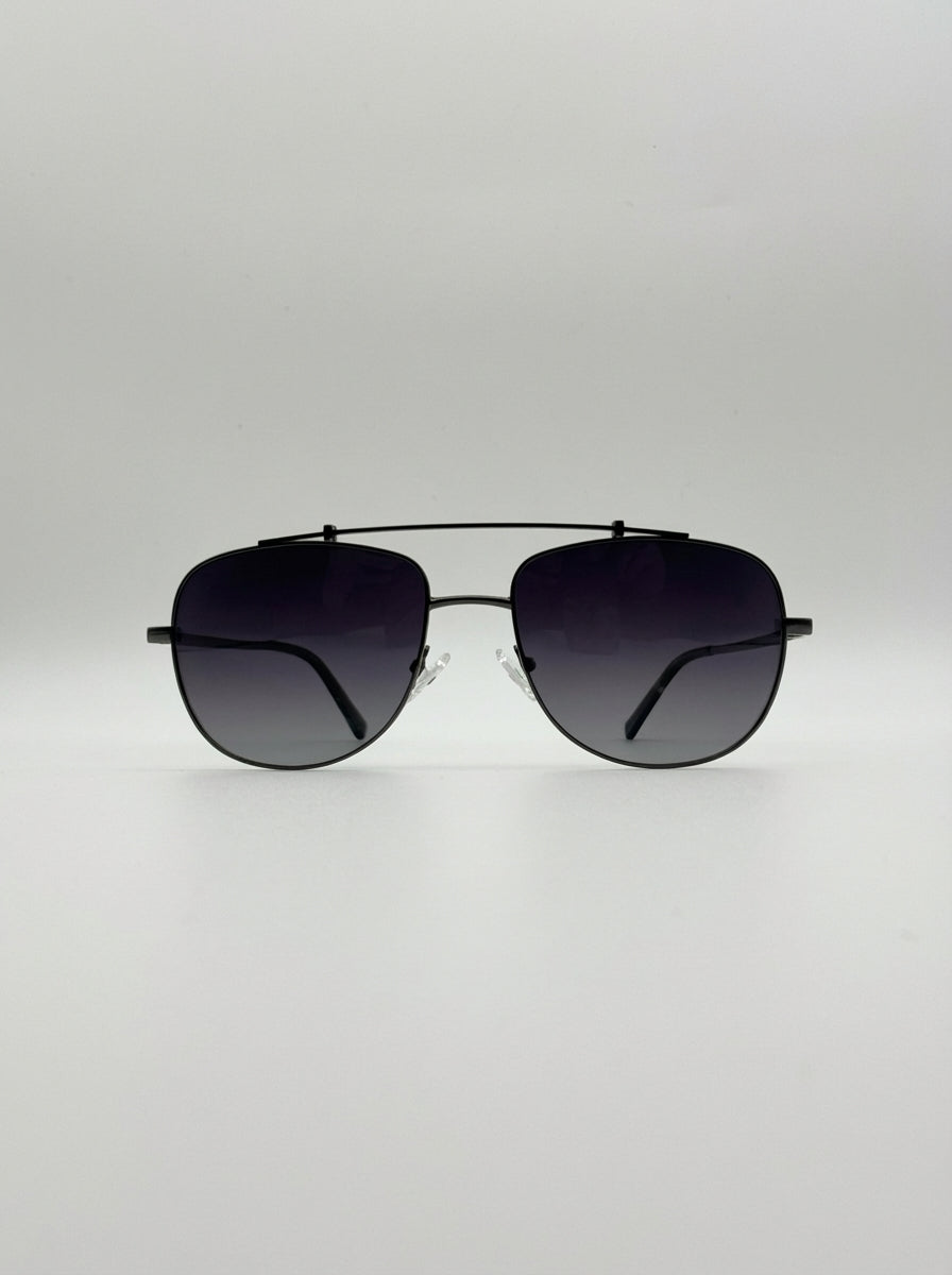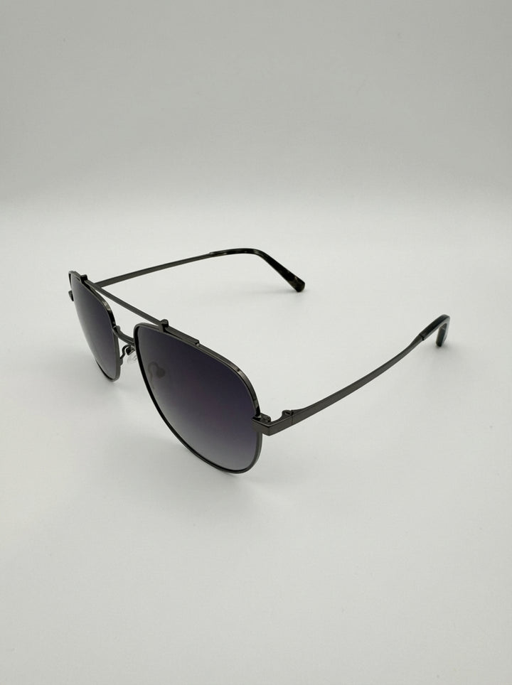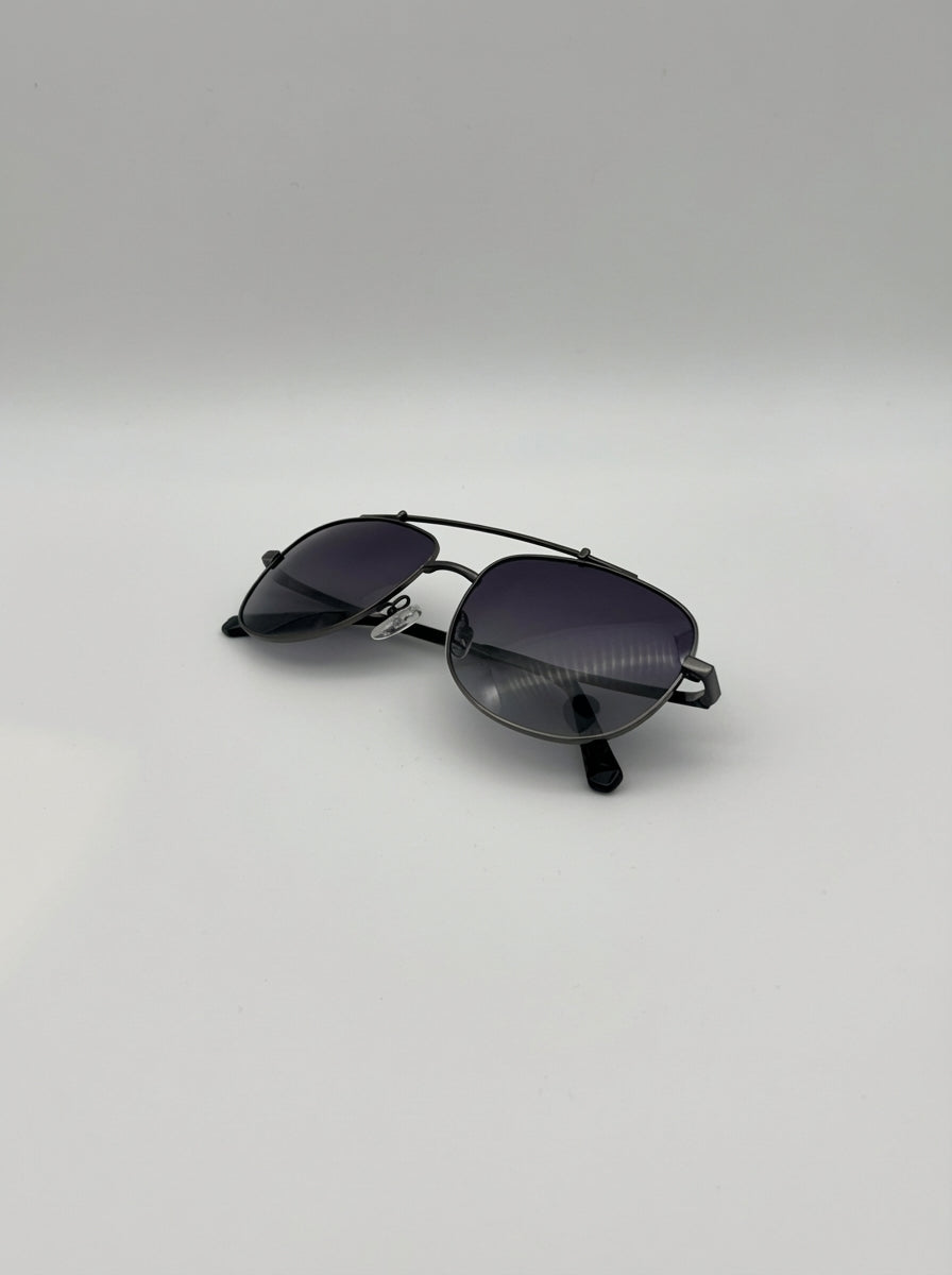 Miami in Gray/Blue takes the classic aviator shape and gives it a sleek, contemporary twist. The gunmetal frame adds understated strength, while the gradient blue lenses bring a refined depth that shifts with the light — the perfect balance of bold and effortless.